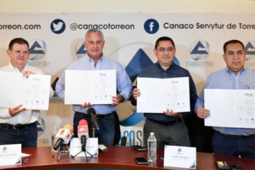 El alcalde de Torreón, Román Alberto Cepeda González, firmó un convenio para el cuidado del agua en la ciudad, en...